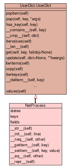Class NetProcess represents one network connection. Most of the properties are read from /proc/net/{tcp,udp,raw} lines. The class uses dictionary-like mapping.